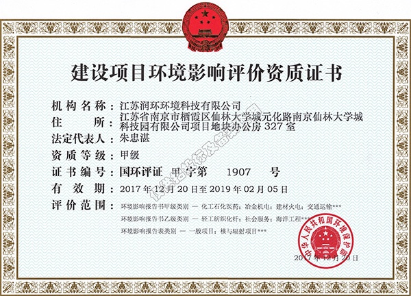 建設項目環(huán)境影響評價資質證書