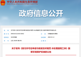 2020年3月13日,生態(tài)環(huán)境部發(fā)布了《排污許可證申請與核發(fā)技術(shù)規(guī)范 水處理通用工序》