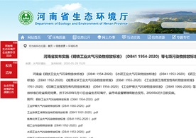 河南省《鋼鐵工業(yè)大氣污染物排放標(biāo)準(zhǔn)》(DB41 1954-2020)《水泥工業(yè)大氣污染物排放標(biāo)準(zhǔn)》(DB41 1953-2020)《鋁工業(yè)污染物排放標(biāo)準(zhǔn)》
