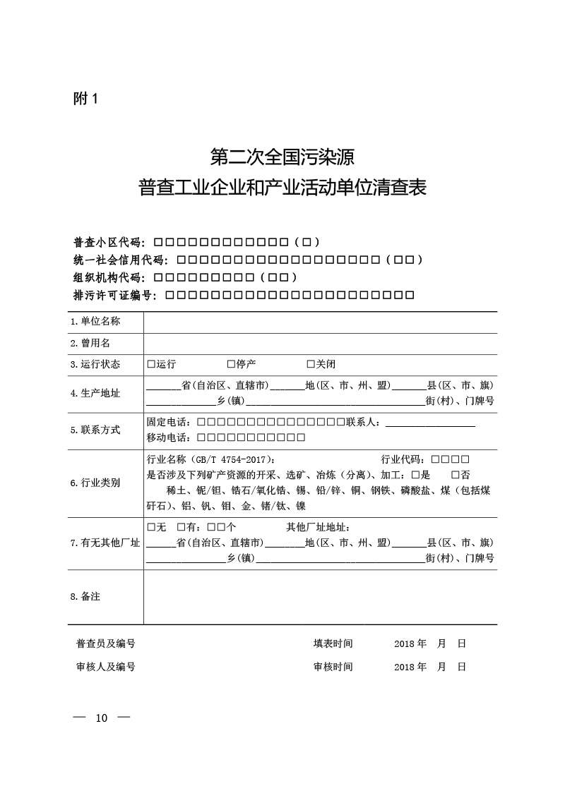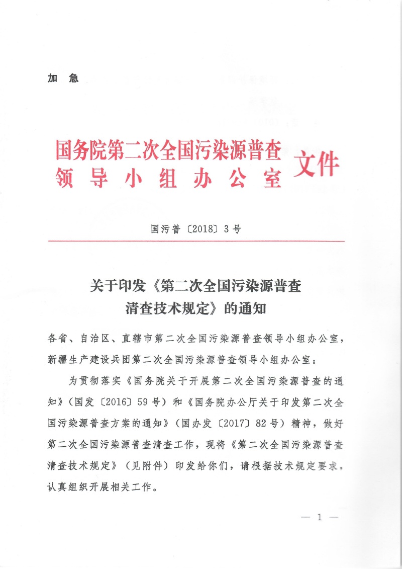 國污普【2018】3號關(guān)于印發(fā)《第二次全國污染源普查清查技術(shù)規(guī)定》的通知