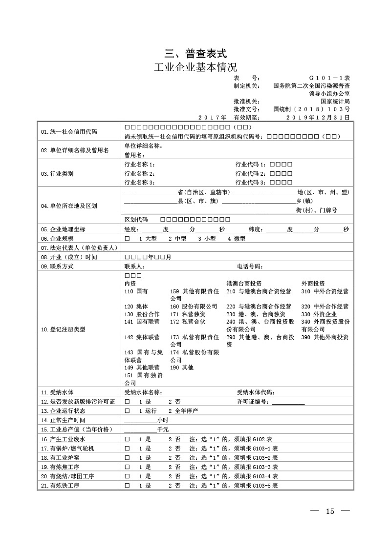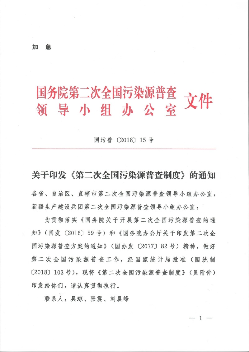 國污普【2018】15號(hào)關(guān)于印發(fā)第二次全國污染源普查制度的通知