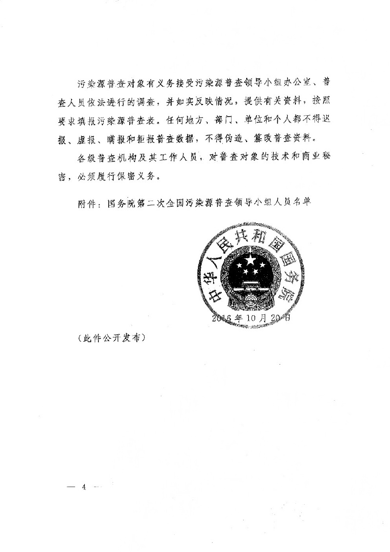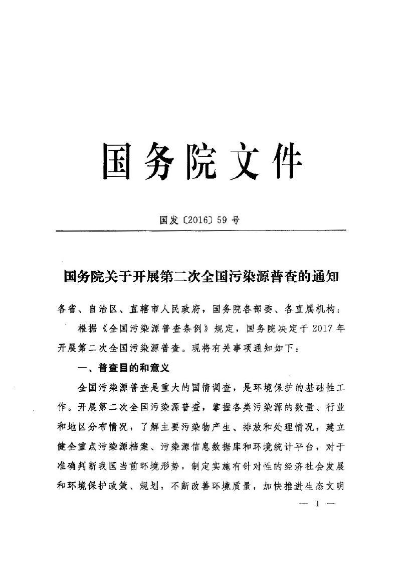 國發(fā)【2016】59號國務(wù)院關(guān)于開展第二次全國污染源普查的通知