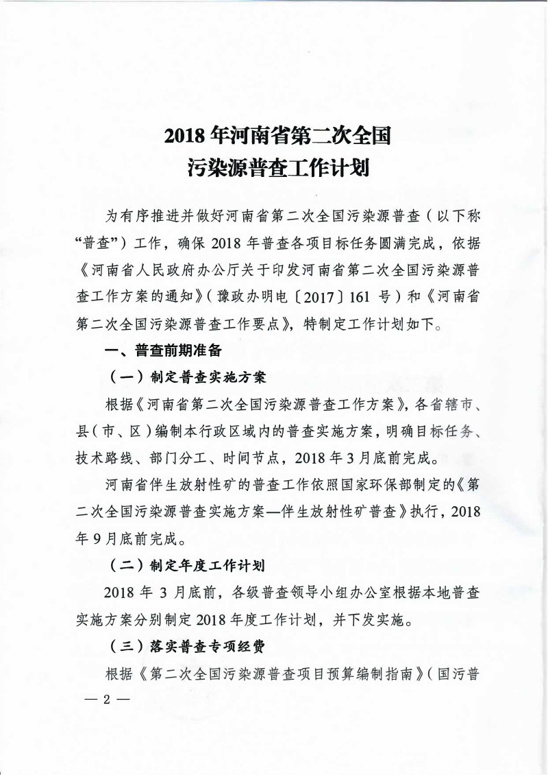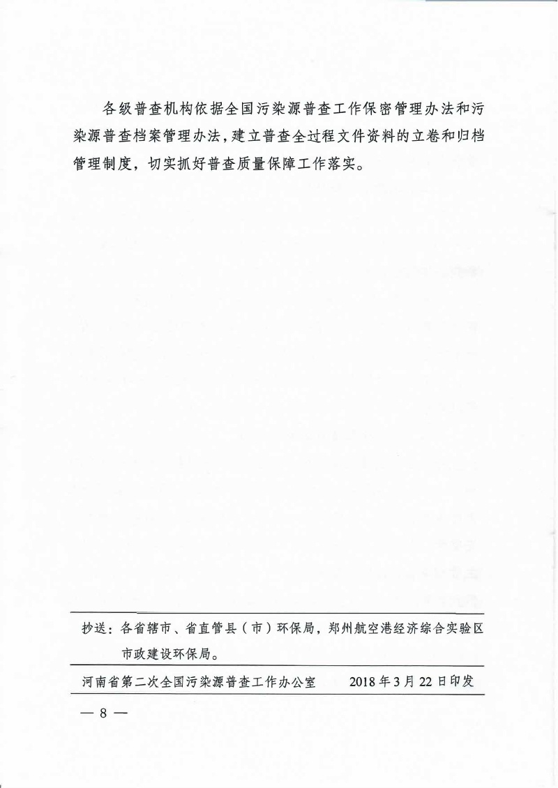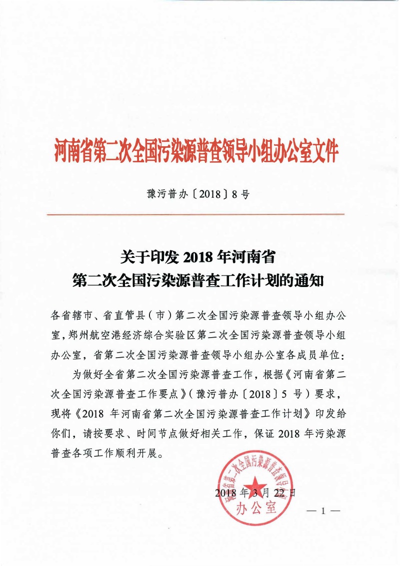 豫污普辦【2018】8號關(guān)于印發(fā)2018年河南省第二次全國污染源普查工作計(jì)劃的通知