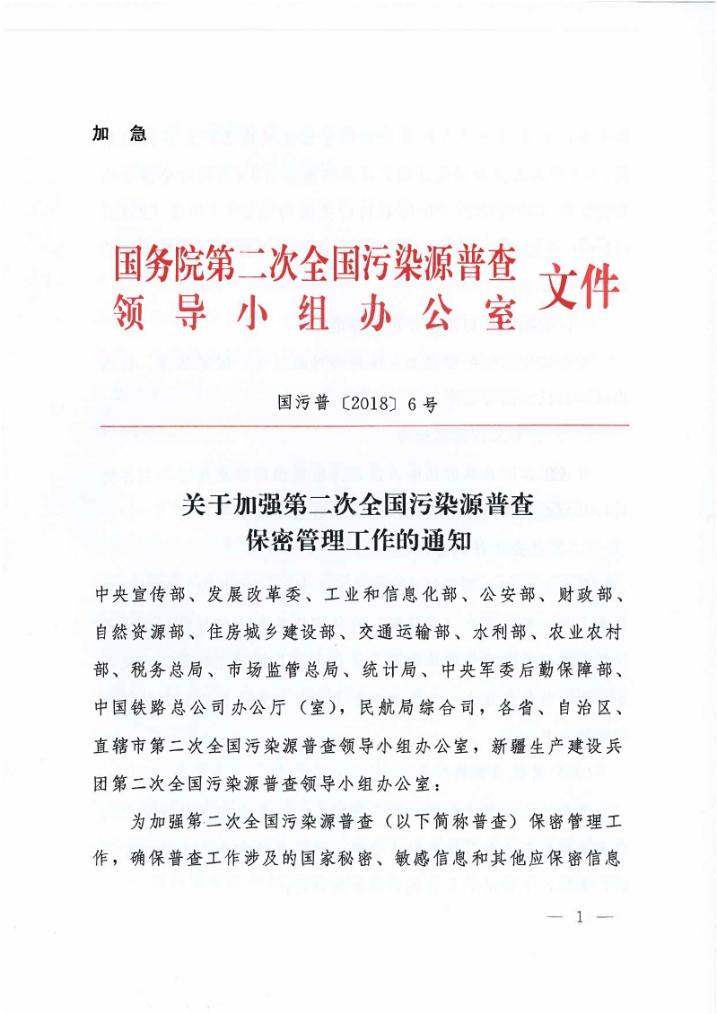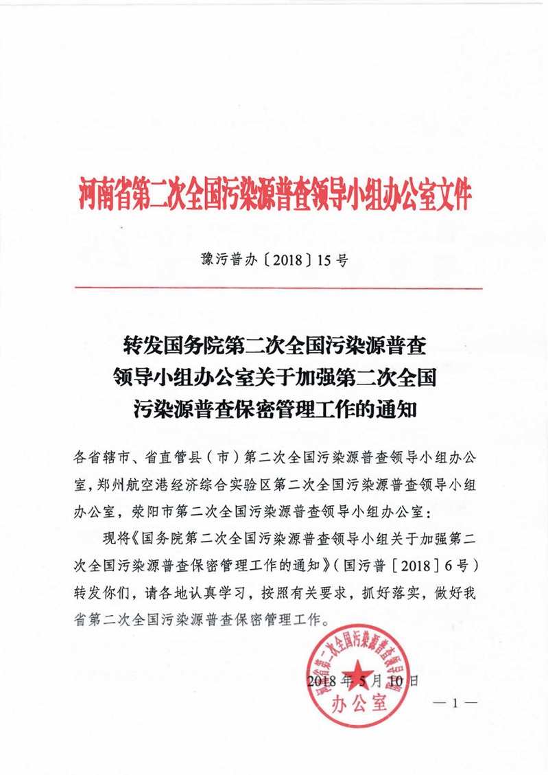 豫污普辦【2018】15號轉(zhuǎn)發(fā)國污普領(lǐng)導(dǎo)小組辦公室關(guān)于加強(qiáng)第二次全國污染源普查保密管理工作的通知(1)