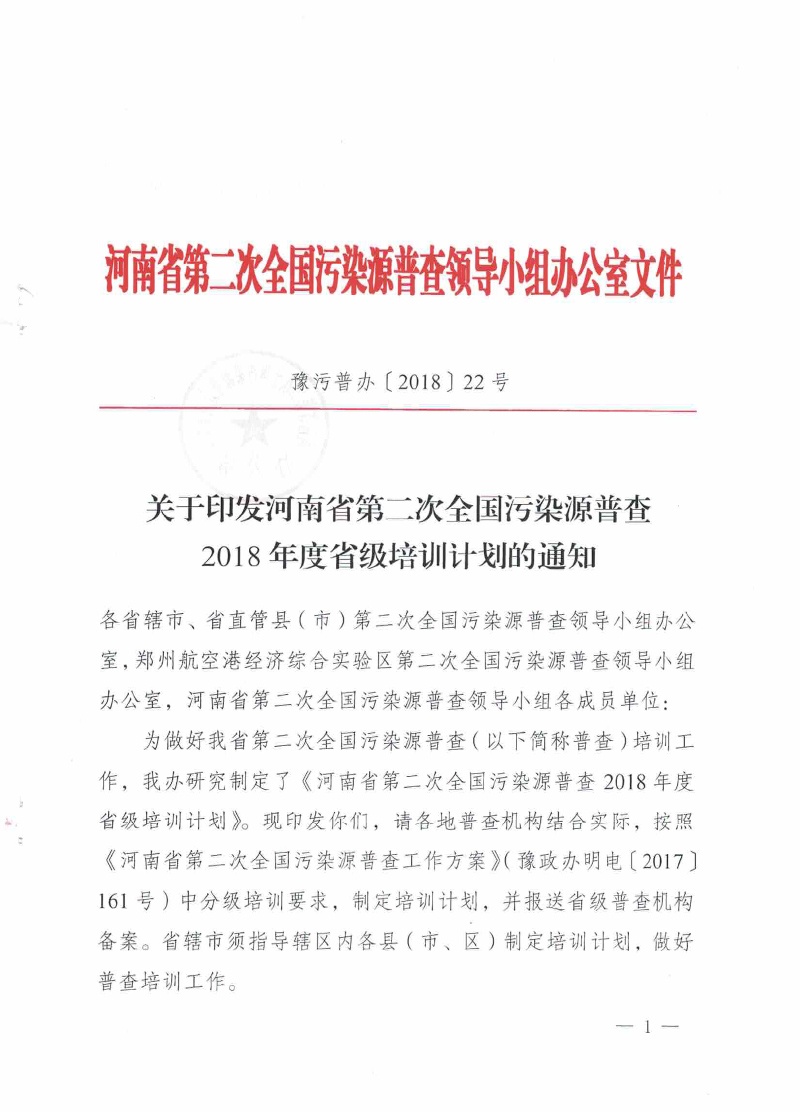 豫污普辦【2018】22號關(guān)于印發(fā)河南省第二次全國污染源普查2018年度省級培訓(xùn)計(jì)劃的通知