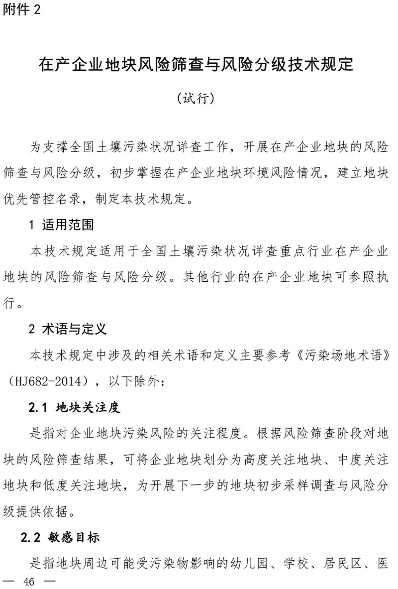 在產(chǎn)企業(yè)地塊風(fēng)險(xiǎn)篩查與風(fēng)險(xiǎn)分級技術(shù)規(guī)定